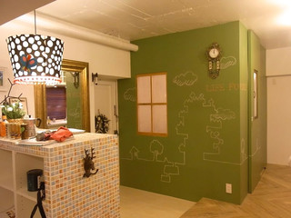 壁一面がお絵かきスクリーンになるので、お子さまと一緒にお絵描きを楽しむことはもちろん、スケジュールやメモ書き・おしゃれなチョークアートなど、思いのままに使うことができて、とても機能的。