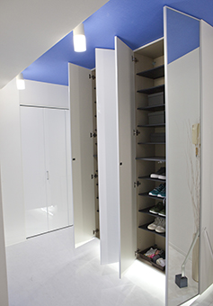 「それに、友人が集まったときに玄関が混雑しないのは案外大事ですね。広い部屋ではないですが、入った途端に狭いと感じるのは避けたかったので、希望どおりです。」自慢のシューズを並べて手入れできるのも嬉しいポイントとのこと。