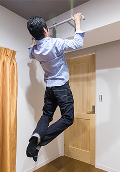 スポーツトレーナーをされている旦那様が、ご自宅でもトレーニングをしたいとのことで、奥様のお兄様の金物屋で造ってもらった懸垂用の器具を寝室の梁に取り付けました。