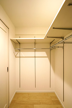 お子様の服も少しずつ増えるでしょうが、広々としたウォークインクローゼットがあれば安心ですね。