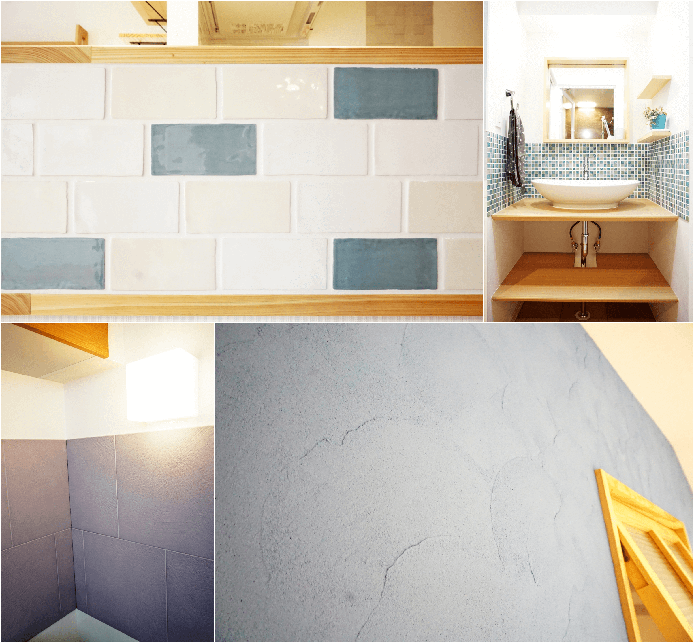 ひかリノベの過去の事例や雑誌から、実現したいことを洗い出して取捨選択。厳選したこだわりの自然素材、建材や設備を、T様が大好きなブルーの色味でまとめていきました。