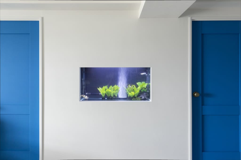 S様が大事に育てているアクアリウム。熱帯魚たちが水草の間を泳ぐ様子は美しく、インテリアとして活かしたい、と要望がありました。