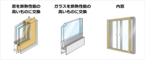 ただし、樹脂や木のサッシは防火の観点から使えない地域があったり、マンションの場合は管理規約でサッシの交換ができないことがほとんど。その場合、室内側に取り付ける内窓(インナーサッシ)などを使う方法や、アルミ樹脂サッシカバー工法(既存の窓枠の上から断熱性の高いサッシを被せる工法)であればOK、というマンションも多いです。