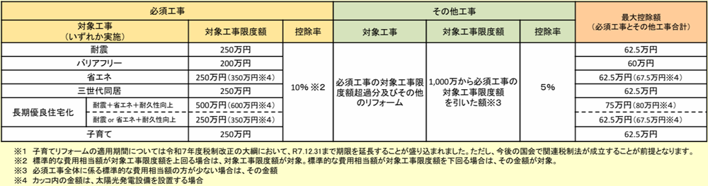 控除額は、工事の種類によって上限が決められています(下図)