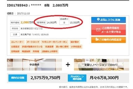 また毎月の管理費・修繕積立金の金額は、物件情報に記載されています。