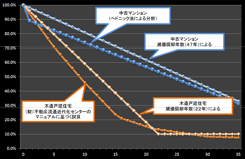 同じく、マンションも一戸建てほど早くはないものの、時間が経つにつれ建物の価値が下がっていきます。