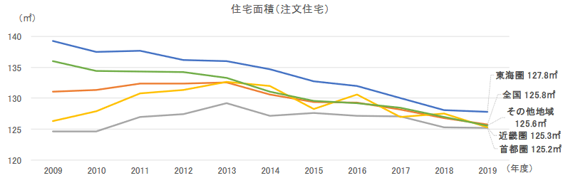 先ほどご紹介した、注文住宅の延床面積の平均値と同じくらいです。