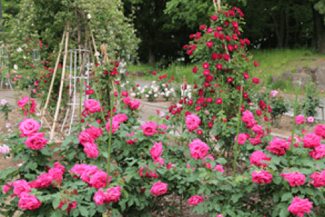 花と緑のふれあいセンター「花菜ガーデン」にあるバラ園では、約1,300種類の美しいバラを見ることができます。