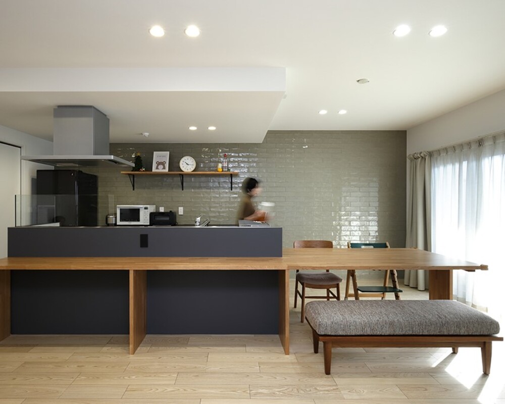 「当初は新築マンションを検討していた」というK様ご夫妻。しかし、間取りや眺望などすべてが理想どおりの物件は⾒つからず、「それなら作ってしまおう!」と中古リノベーションに方針転換。「内覧にはひかリノベのコーディネーターが同行し『この壁は壊せるか?』など、建築的な課題も検討してくれました。そのため購入後に『やっぱり出来ない』ということもなく、希望をすべて叶えることができました」